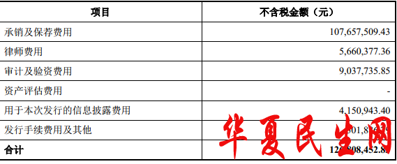 中伟股份本次上市发行费用为1.27亿元,其中保荐机构华泰联合证券有限责任公司获得承销保荐费用1.08亿元,天职国际会计师事务所(特殊普通合伙)获得审计验资费用903.77万元,湖南启元律师事务所获得律师费用566.04万元。