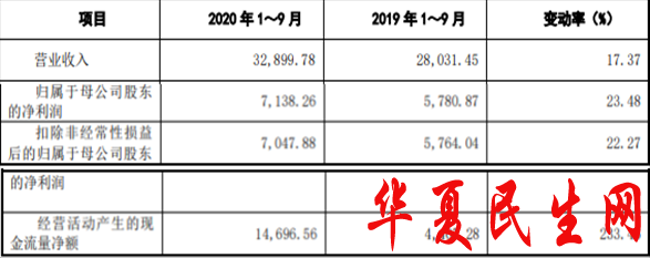 2020年1-9月,公司实现营收3.29亿元,同比增长17.37%;归母净利润7138.26万元,同比增长23.48%;扣非净利润7047.88万元,同比增长22.27%;经营活动产生的现金流量净额1.47亿元,同比增长233.46%。
