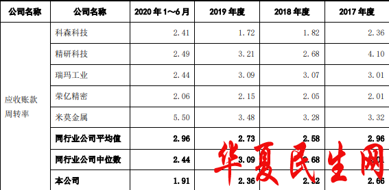 报告期内,福立旺应收账款周转率分别为2.66次、2.32次、2.36次、1.91次,同行业公司应收账款周转率平均值分别为2.96次、2.58次、2.73次、2.96次。