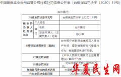中国经济网北京12月21日讯银保监会网站今日公布的中国银保监会台州监管分局行政处罚信息公开表(台银保监罚决字〔2020〕19号)显示,台州银行存在贷款资金违规流入房地产市场;理...