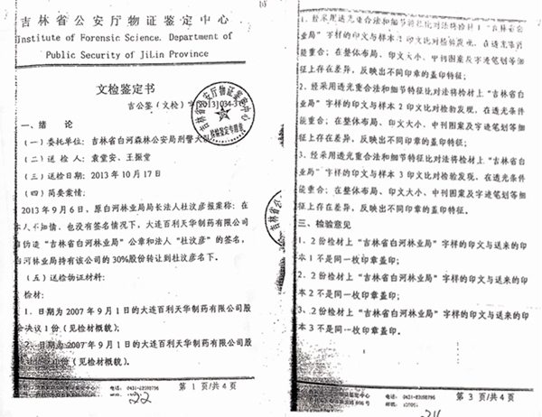 2007年9月1日,赵卿全利用伪造《股权转让协议》、《股东会决议》、私刻白河林业局公章、伪造杜汶彦(原吉林省白河林业局局长)身份证、结婚证、签名等方式,将吉林省白河林业局持有的百利公司30%的股权,转让到赵卿全个人名下(吉公鉴(文检)字【2013】034-1号,034-2号,034-3号)做出鉴定,得出结论:上述《股权转让协议》、《股东会决议》、白河林业局公章及杜汶彦签名等均系伪造),完成了第二步职务侵占。