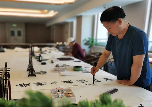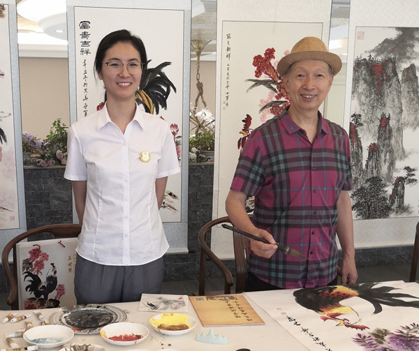 8月1日,由中国书画界联合会副主席兼秘书长李云龙组织书画艺术家们走进悦之府国际退休村,开展“庆建军95周年‘八一’翰墨谱华章”书画笔会活动,出席活动的嘉宾有: 中国书画界联合会副主席兼秘书长、理事、中国书法艺术研究院副院长兼秘书长、理事李云龙;中国书画界联合会理事会常务理事、中国书法艺术研究院副院长陈华成;中美文化大使周鸿儒;中国书画院院士、中国书法艺术研究院理事、墨腾书画院副院长刘玉阁;国礼画家、国家一级美术师、北京书画院艺术联盟主席团 执行主席王世军;中国书法艺术研究院会员刘寅峰等老师和悦之府国际退休村员工共同举办此次活动。以翰墨丹青为这里居住的退休官兵贡献了一场视觉盛宴,送上节日的祝福,受到退休官兵的热烈欢迎。