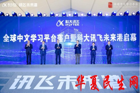 致辞结束后,现场举行了全球中文学习平台落户暨科大讯飞未来港启幕仪式,田学军副部长、王清宪书记、邓云锋厅长、周安主任、赵士玉副书记、刘庆峰董事长等领导及嘉宾上台启幕。