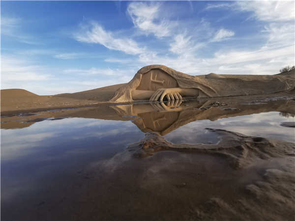 “美女泉”位于阿克塞县城不远的游牧沙海景区,据说亲眼见过金丝玉的人,都会沉醉于它的精美和华丽,相信见过了沙海深处的楼兰公主雕像,你一定会对自然充满敬畏,更加珍惜和谐的生态雕像。“美女泉”傍依沙丘而建,沙丘下闭目而卧,纤细的双手交叉托着腮,神态十分疲倦,神情忧伤、悲戚,泉眼不大,呈椭圆形,俯身卧下的公主却一直盯着这一湾泉水,像在诉说千年守候的执着。