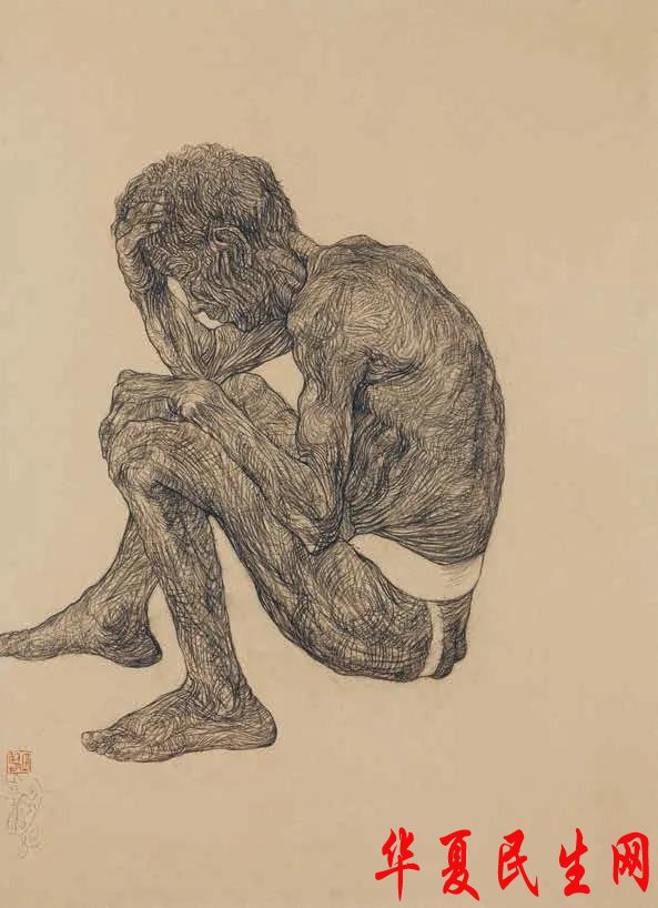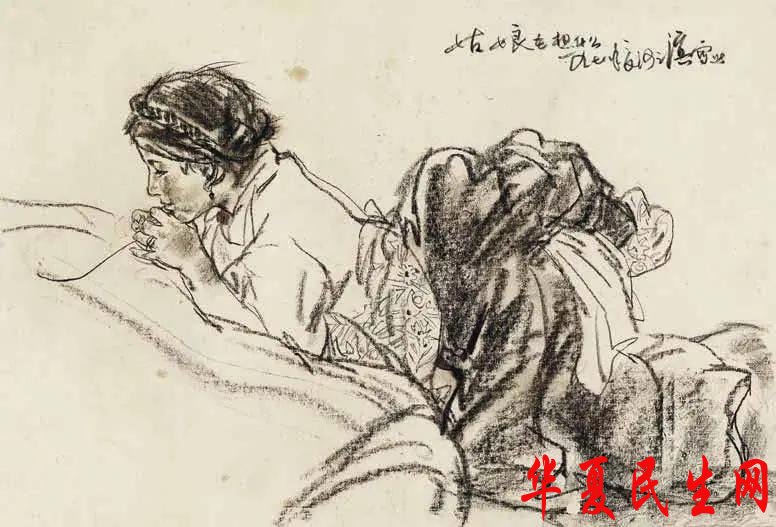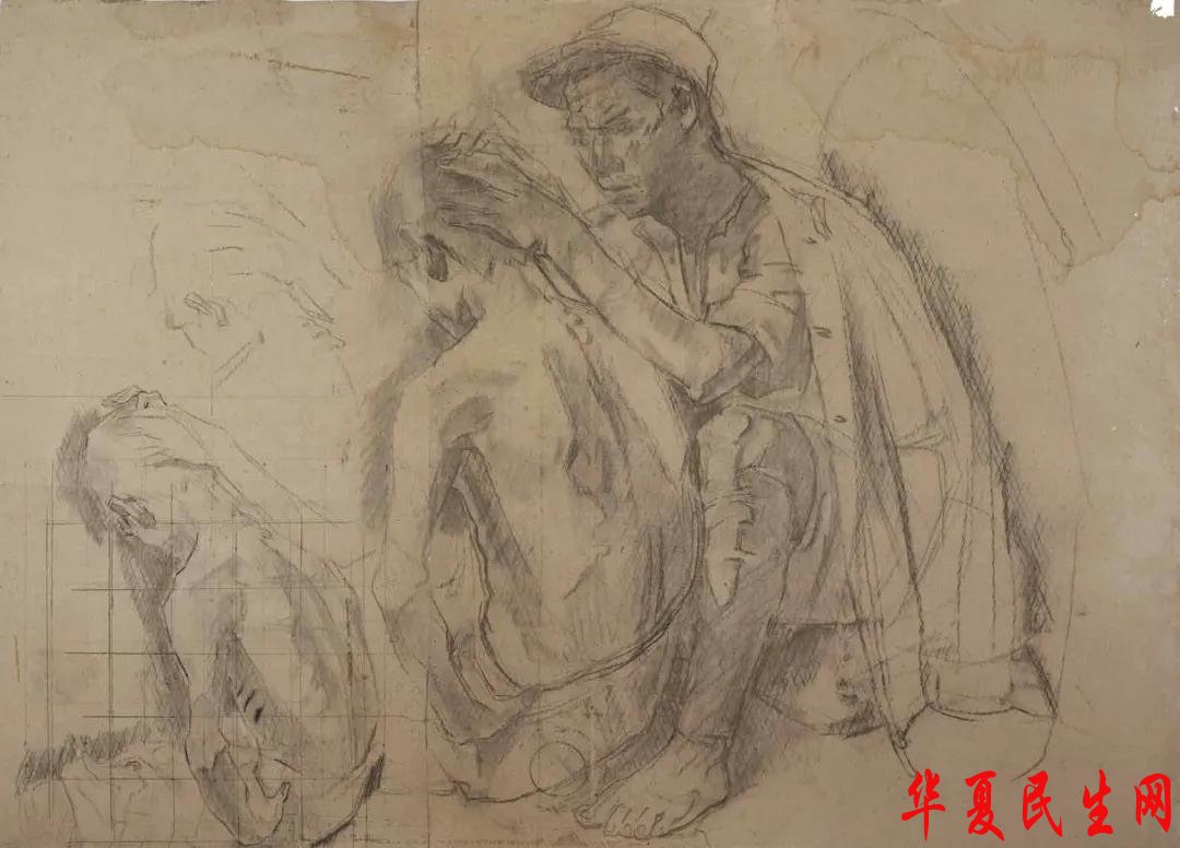 冯法祀 捉虱子——素描创作稿 1948年