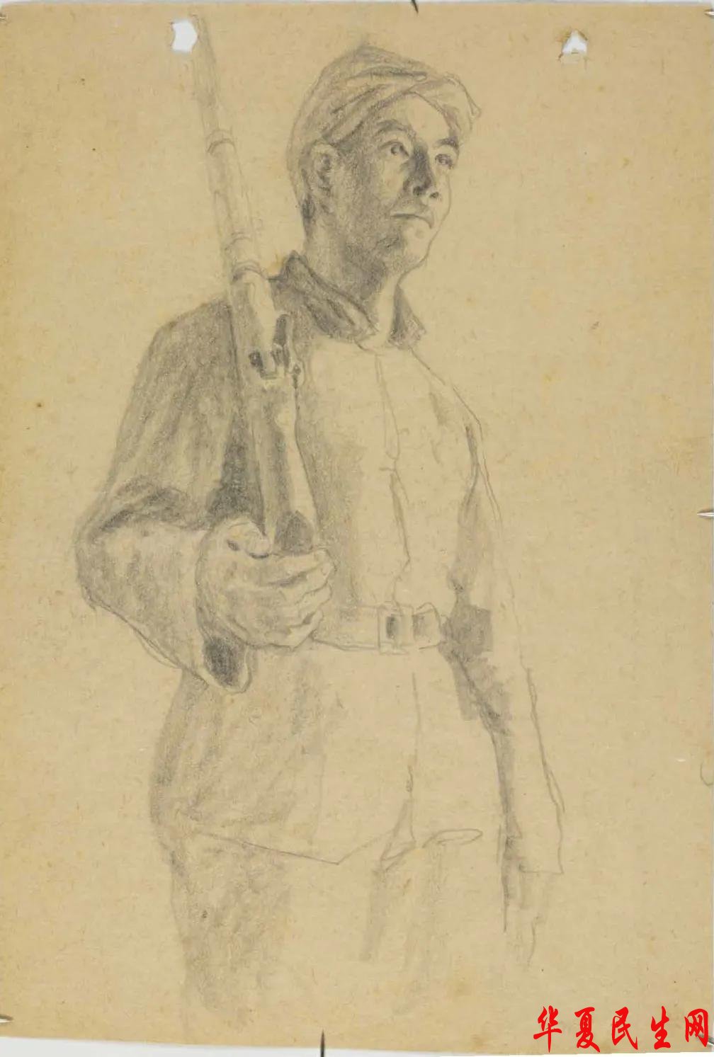 石鲁 扛枪的男民兵 20世纪40年代