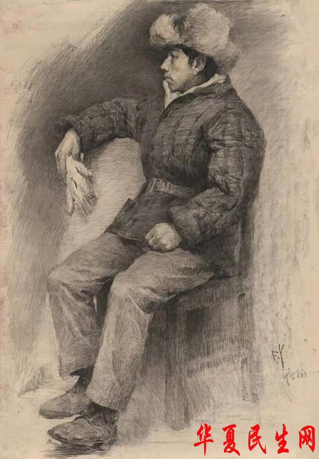 范扬 戴皮帽的工人像 1978年