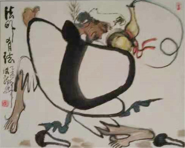 他参加日本展出获奖的吾佛济公和西安参加活动所创作的禅悟图是他狂草人物画的代表作。