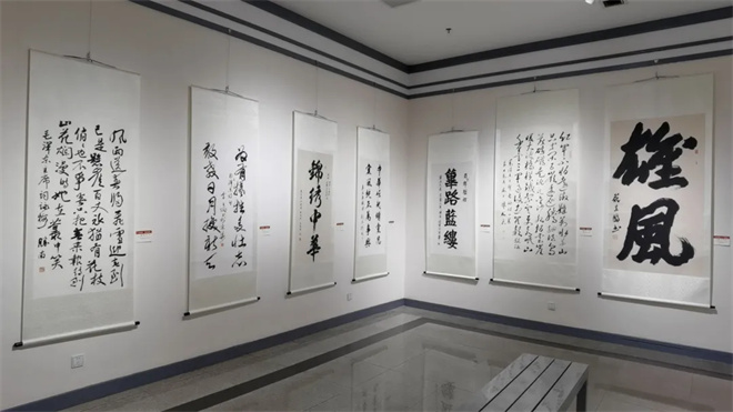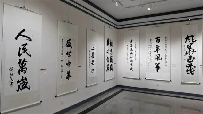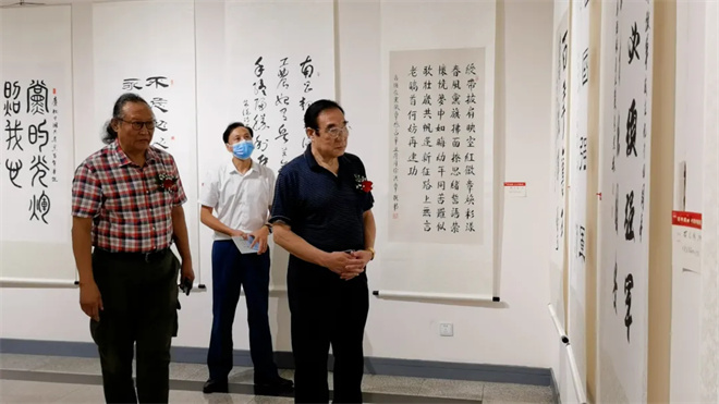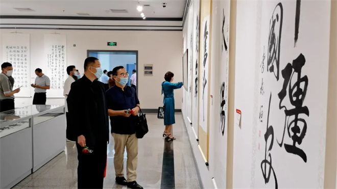 这次展览与观众见面的100余幅书画作品,凝聚着一批为共和国做出重要贡献的老将军、一批德艺双馨的中国书法家协会理事和中青年实力派书画家的心血和智慧,体现了较高的思想性、艺术性和创造性。他们努力继承传统,用饱蘸深情的笔墨,从不同角度讴歌了伟大的建党精神,反映了新时代社会主义建设新风貌、新成就,弘扬了时代主旋律,传播了正能量,赓续了红色基因,彰显了爱党、爱国、爱军队、爱人民的崇高情怀,更激励着一代又一代勤劳勇敢的中国人民不忘初心,牢记使命,为实现强国梦、强军梦而不懈奋斗。
