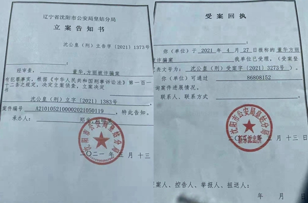 2021年4月26日,我让我爱人何宏到沈阳皇姑区公安分局新乐派出所报案,新乐派出所以吴越是省公安厅领导身份特殊为由不予立案。第二天我们打110报警,派出所让把犯罪嫌疑人改成陈正文,5月13日新乐派出所通知我正式立案。立案后,新乐派出所、刑侦一中队先是立而不侦,然后敷衍办案,案件毫无进展。经过我们从派出所到分局,到市局,再到公安厅,连续三个月上访后,皇姑分局刑侦一中队才通知我们做笔录。之后,办案警官不对犯罪嫌疑人陈正文、吴越采取任何强制措施,传唤了陈正文后,又将其放走,陈正文一直在逃。另一嫌疑人吴越利用自己的人脉和专业技术逃避法律制裁。上访期间,市公安局控申处长庞某为吴越通风报信;皇姑分局办案警官帮助吴越拖延时间,而且又把吴越嫌疑人身份变成了证人身份,导致公安机关报送检察机关的诈骗犯罪案卷证据不足,又一次为吴越、陈正文串供、灭失证据争取到了时间。