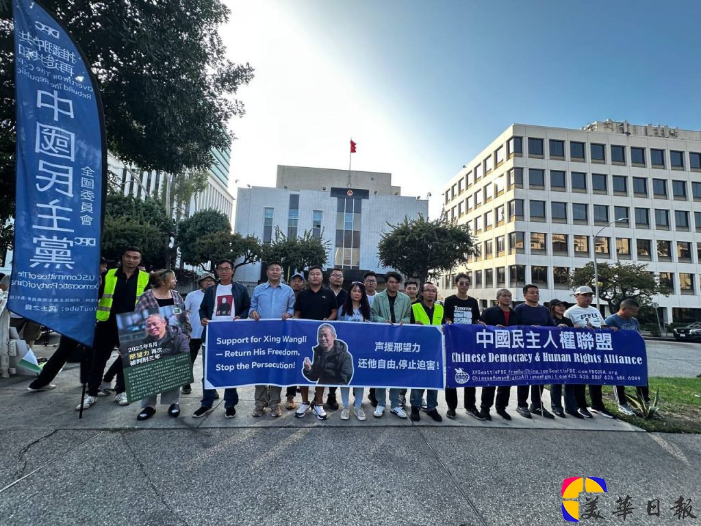 邢鉴于是在中领馆前呼吁,要求中共政府无罪释放他的父亲邢望力。